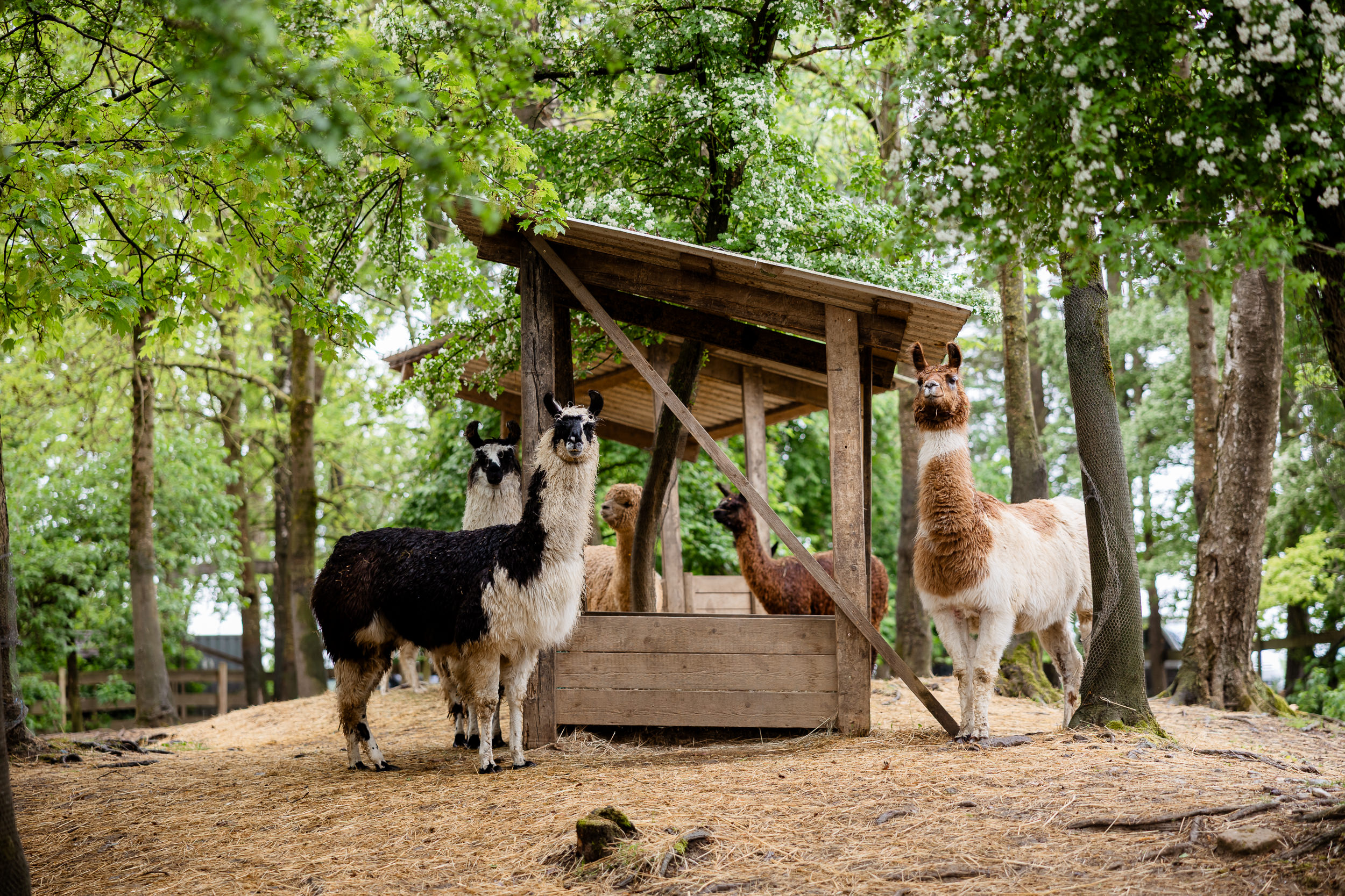 Was jedoch auf keinen Fall fehlen darf, sind Mineralsalze, die es in Pulverform oder als Leckstein zu kaufen gibt. Ein Leckstein darf nicht zu hart sein, denn Neuweltkameliden können nicht lecken und nicht alle Tiere raffeln harte Lecksteine mit den Zähnen ab. Ob Leckstein oder Pulver, wesentlich ist, dass die Mineralsalzmischung dem Bedarf der Neuweltkameliden entspricht und dass jedes Tier davon genügend aufnimmt. Die Tiere benötigen täglich frisches, sauberes Wasser. Bei einer Wassertränke muss darauf geachtet werden, dass im Winter das Wasser nicht einfriert.